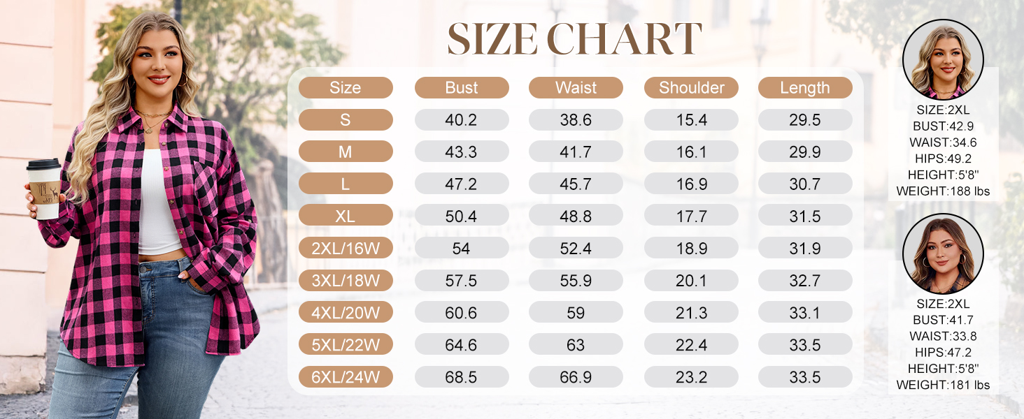 Womens Plus Size Flannel Shirts Long Sleeve Button Down Plaid Shirt Roll Up Oversize Checkered Blouse Top Fall A-03 Hot Pink Flannel Plaid Shirt